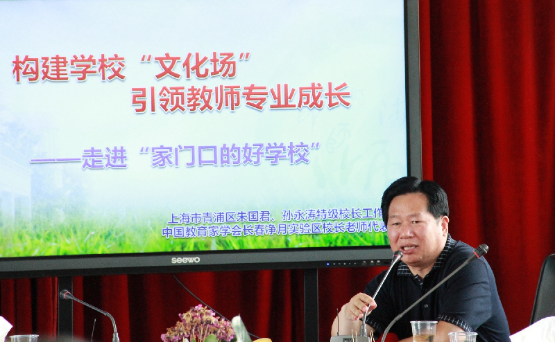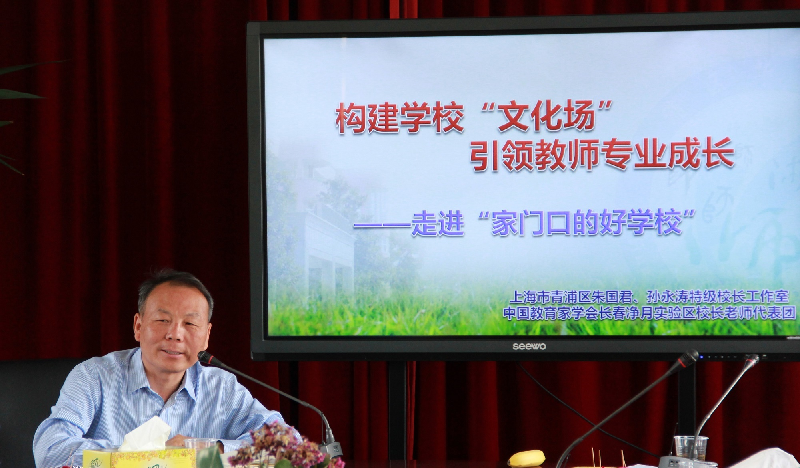 活动由特级校长工作室孙永涛书记亲自主持,孙书记代表华新小学教育集团欢迎长春的校领导,随后同大家一起观看了为上海市校长大培训拍摄的讲座视频,通过视频与大家一同交流了在华小构建过程中,如何通过构建学校文化场,引领教师专业成长,将华新小学打造成上海市家门口好学校。